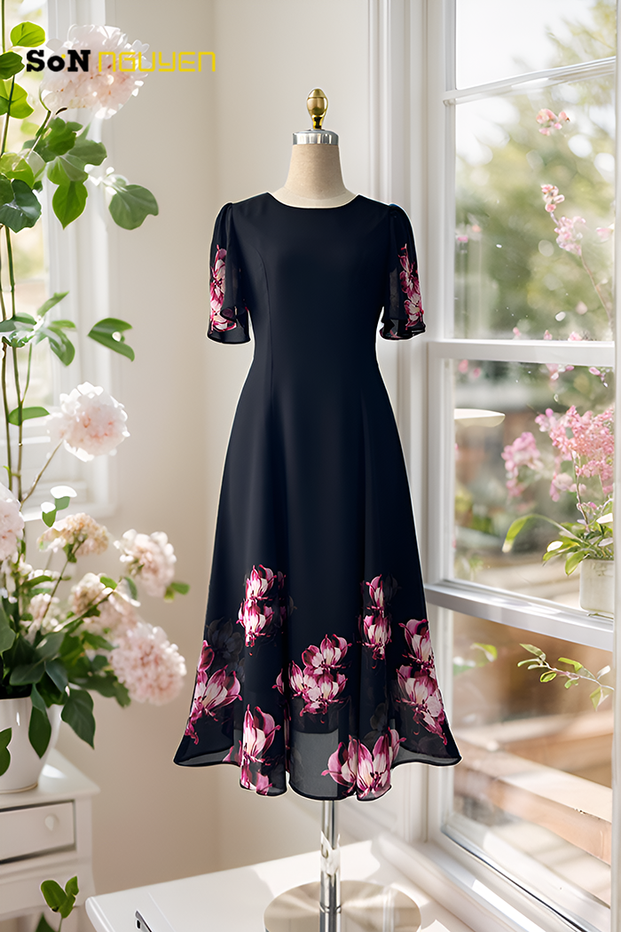 - Đầm hoa trung niên 8 mảnh eo suông giấu bụng 37301