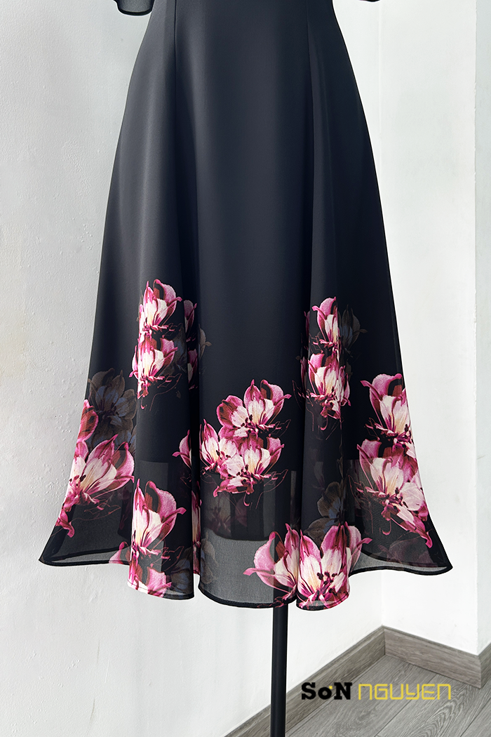 - Màu sắc: Nền đen hoa đỏ