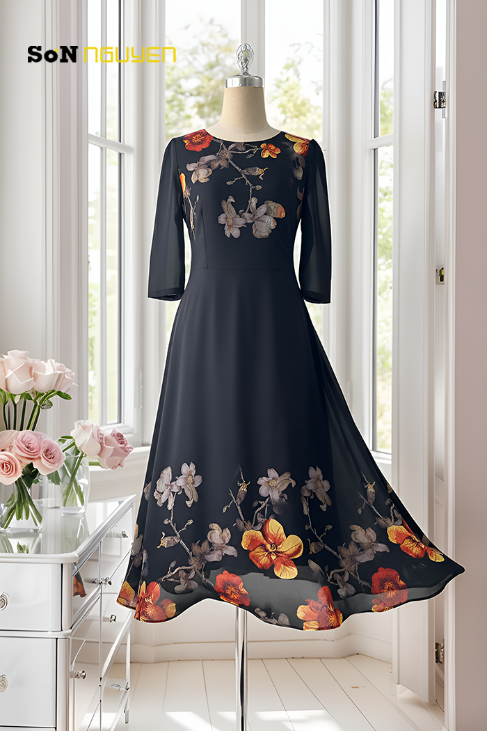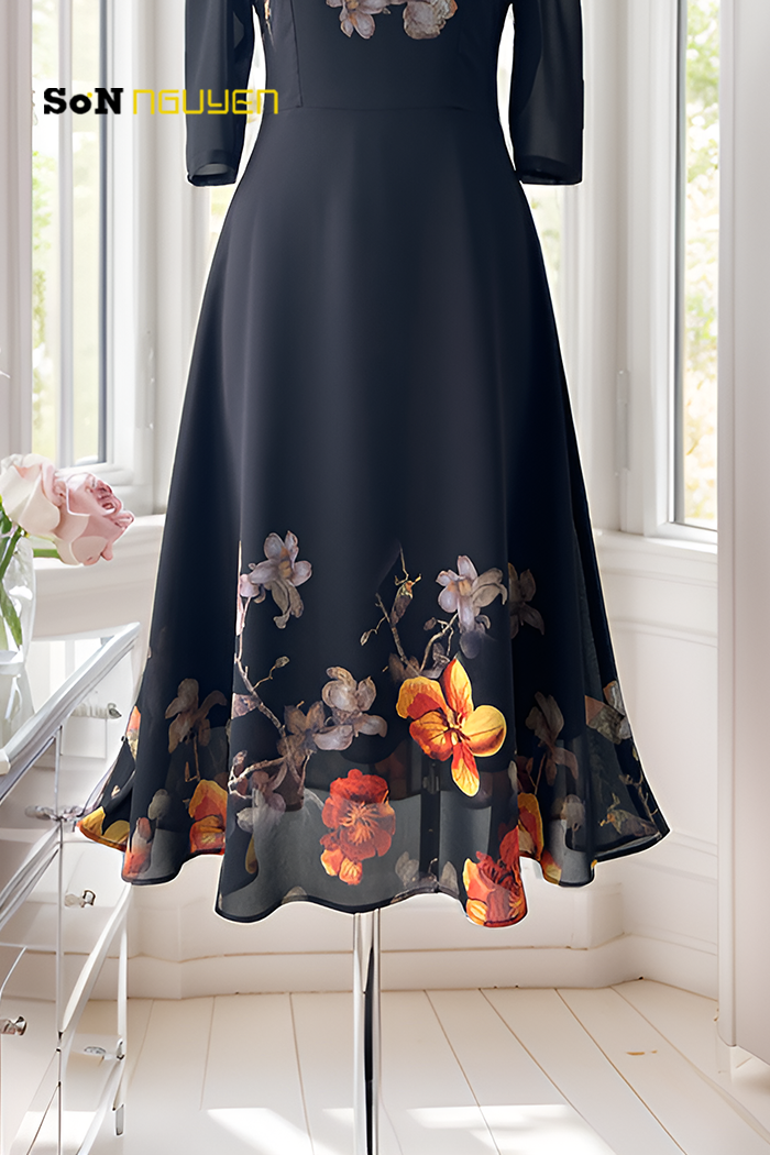 Tỏa sáng với mẫu đầm xòe hoa thanh lịch được thiết kế dành riêng cho phụ nữ trung niên yêu thích phong cách nữ tính và tinh tế. Với chất liệu voan 2 lớp mềm mại, ít nhăn, dễ bảo quản. Thiết kế tay lỡ kín đáo kết hợp phần thân trên ôm nhẹ, tôn dáng hiệu quả mà vẫn thoải mái. Phần chân váy xòe nhẹ in hoa nổi bật tạo nên vẻ ngoài duyên dáng, giúp che khuyết điểm vòng hông và bụng một cách khéo léo. Thích hợp để quý cô trung niên diện đi tiệc, gặp mặt hay sự kiện gia đình.
