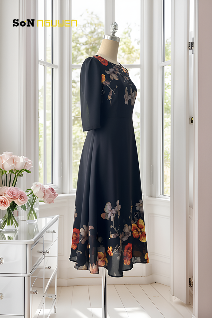 - Đầm xoè trung niên dáng dài qua gối 38704