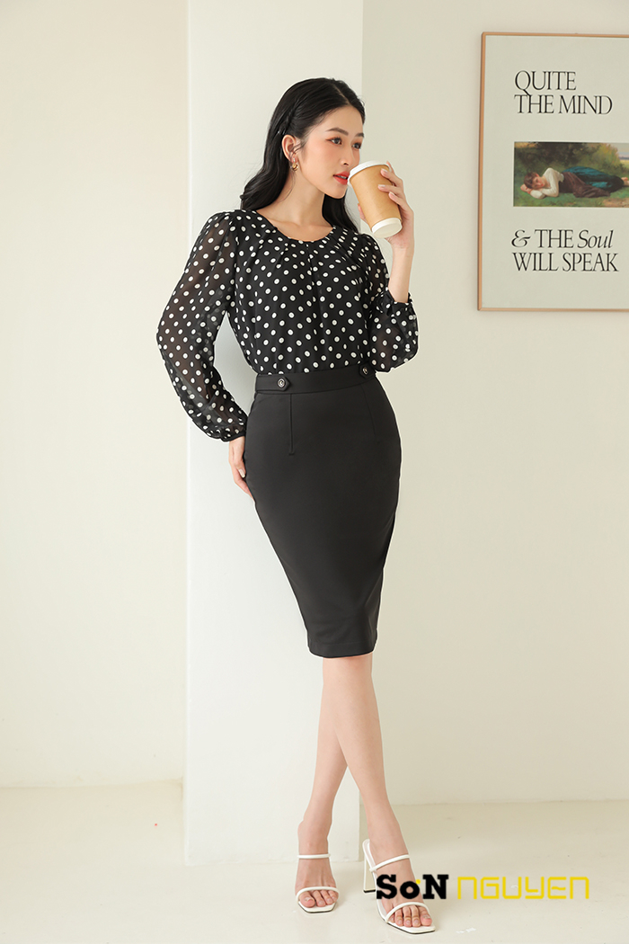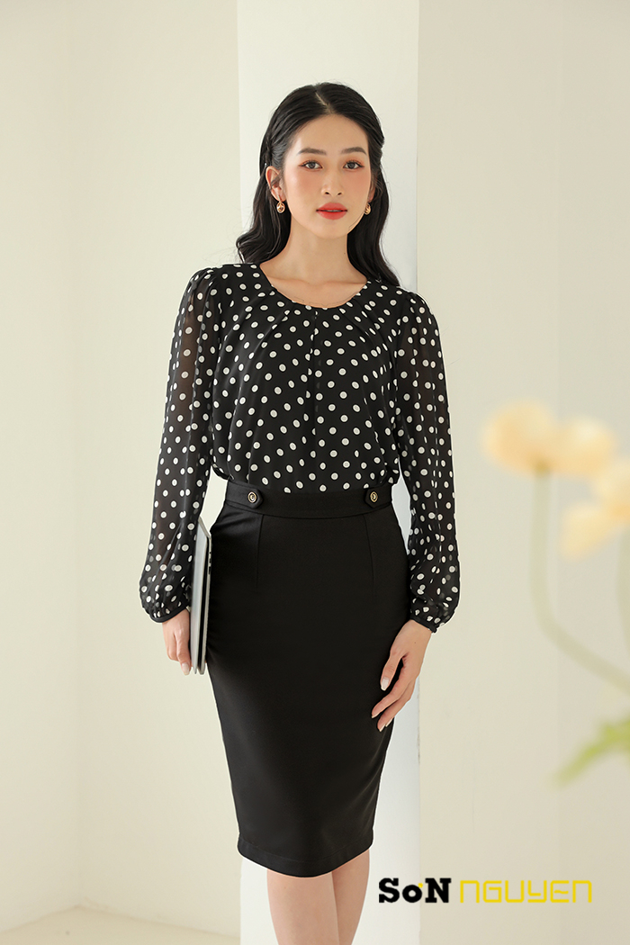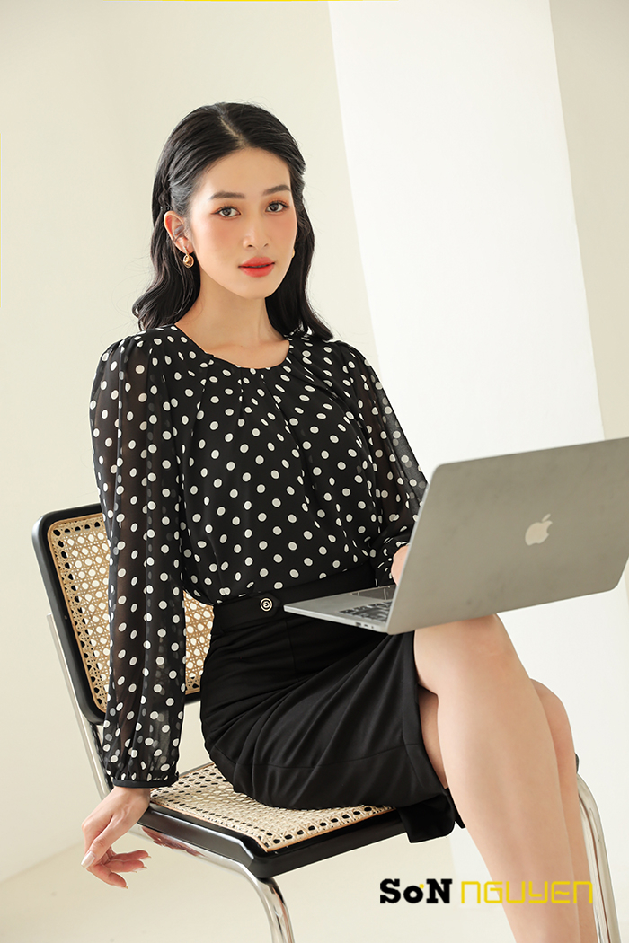 - Áo sơ mi nữ công sở chấm bi tay dài Thời trang Sơn Nguyễn 29101