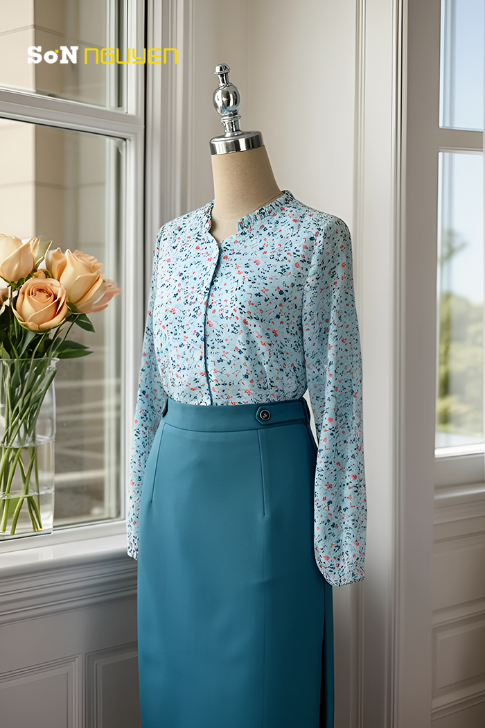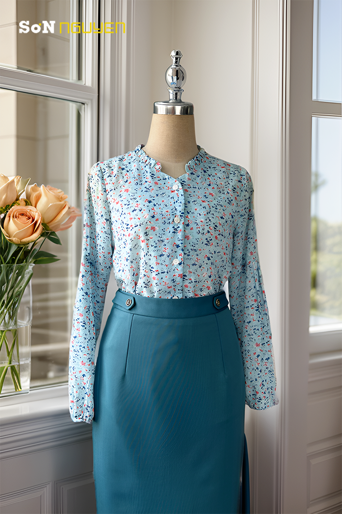 - Áo sơ mi nữ công sở hoa nhí cổ bèo tay dài Thời trang Sơn Nguyễn 31206